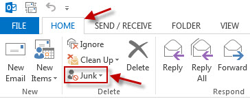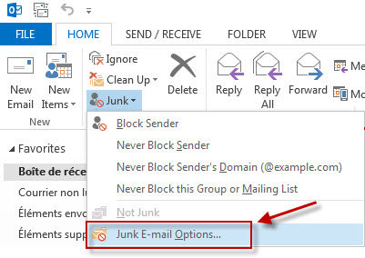 in the drop-down menu select 'Junk E-mail Options ...'.
